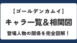 キャラ紹介 【ゴールデンカムイ】相関図&主要キャラ一覧|登場人物の関係を完全解説 『ゴールデンカムイ』の相関図とキャラ一覧をまとめました。杉元陣営・土方陣営・第七師団や囚人たちまで、登場人物の関係をわかりやすく解説します。 2025.09.19 キャラ紹介